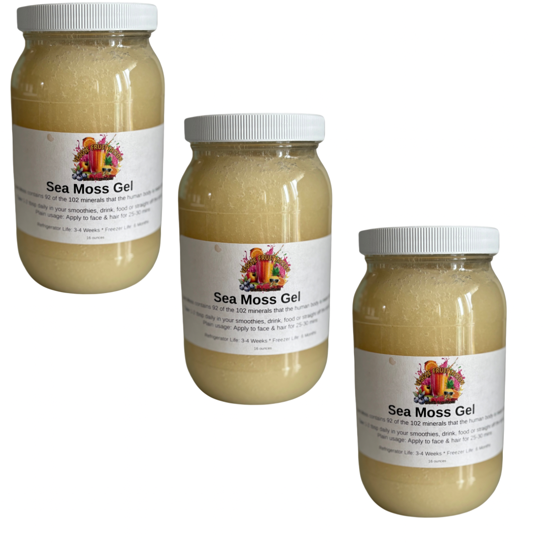 Sea Moss contains 92 minerals out of 102 minerals that the human body is made of, supports a healthy heart, promotes good digestion, helps maintain a healthy thyroid, supports a healthy immune system, improves metabalism, supports hair, nails and skin, improves libido, excellent source of protein, vitamin C,B,B12,K,A produces collagen, boost immunity and detoxifies the body.